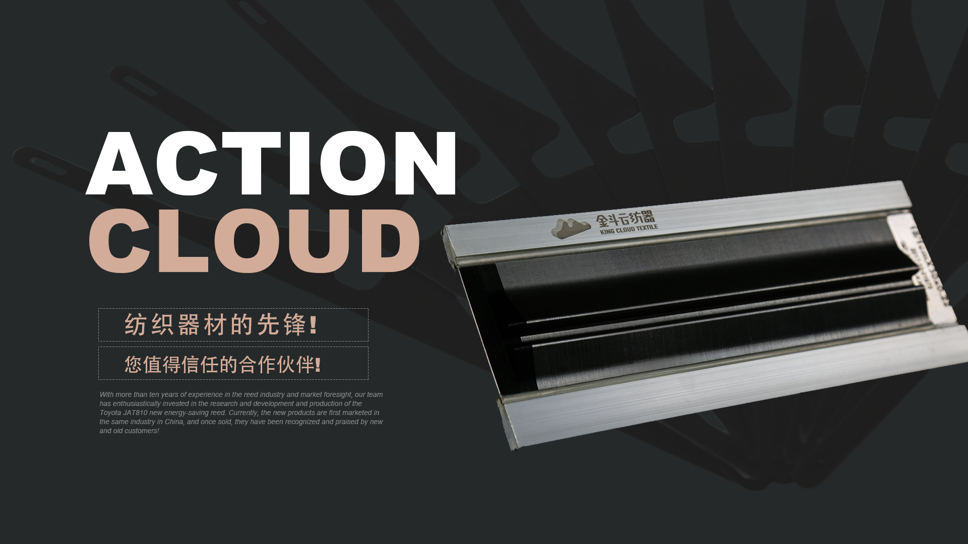 憑借十多年鋼筘行業(yè)經(jīng)驗及對市場的前瞻性,我們團隊滿懷熱情的投入到豐田JAT810新型節(jié)能鋼筘的研發(fā)和生產(chǎn)當(dāng)中,目前新產(chǎn)品在國內(nèi)同行業(yè)中先行上市銷售,一經(jīng)銷售就得到了新老客戶的認(rèn)可和好評!